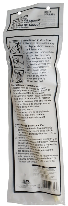 ProSource PMB-208-3L Toilet Flush Lever, Front, 8 in L Flush Arm, Plastic