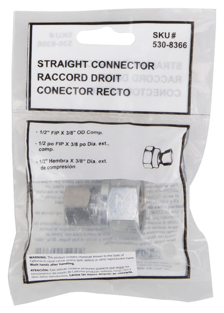 ProSource PMB-259-3L Water Supply Connector, 1/2 x 3/8 in, FIP x Compression, Brass, Chrome