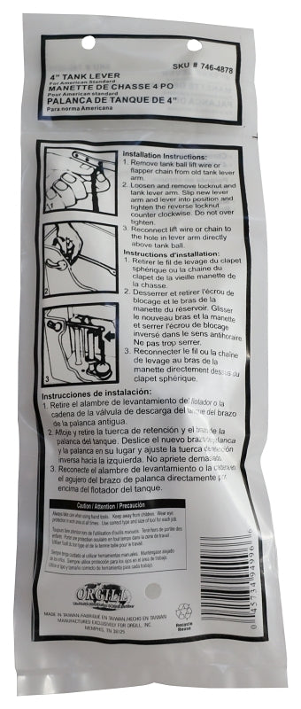 ProSource PMB-211 Toilet Flush Lever, Front, 4 in L Flush Arm, Plastic, Chrome
