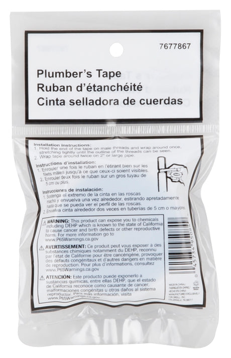 ProSource PMB-445 Plumber's Tape, 300 in L, 1/2 in W, PTFE, White