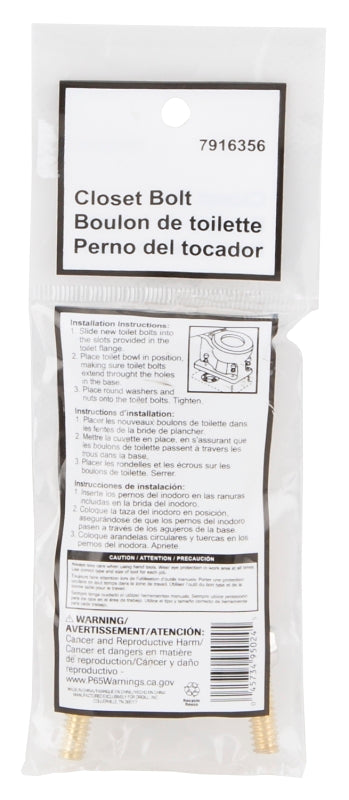 ProSource PMB-229 Bolt Set, Steel, Brass, For: Use to Attach Toilet to Flange