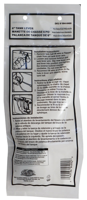 ProSource PMB-206 Toilet Flush Lever, Front, 6 in L Flush Arm, Plastic, Chrome