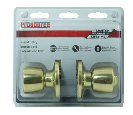 ProSource TS700BRA4B Entry Knob, Polished Brass, K3, KW1 Keyway, 3 Grade, Pack of 3
