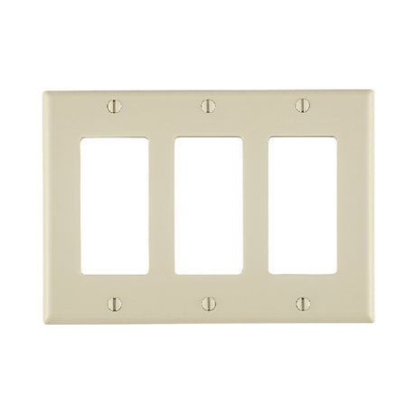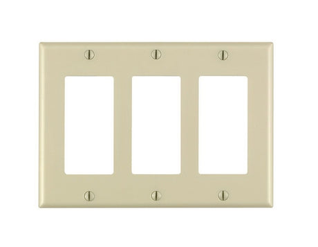Leviton 80411-I Wallplate, 4-1/2 in L, 6.37 in W, 3-Gang, Thermoset Plastic, Ivory, Smooth