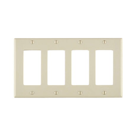 Leviton 80412-I Wallplate, 4-1/2 in L, 8.19 in W, 4-Gang, Plastic, Ivory