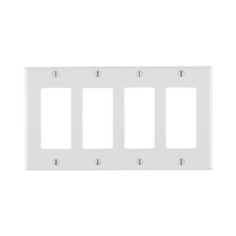 Leviton 80412-W Wallplate, 4-1/2 in L, 8.18 in W, 4-Gang, Thermoset Plastic, White, Smooth