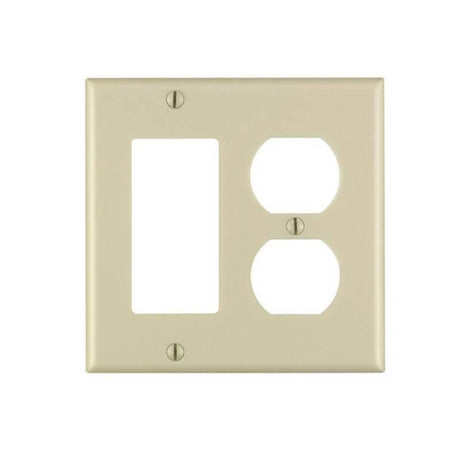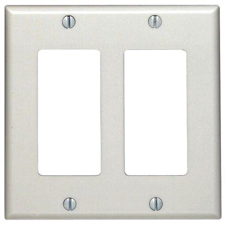 Leviton 80409-I Wallplate, 4-1/2 in L, 4.56 in W, 2-Gang, Thermoset Plastic, Ivory, Smooth