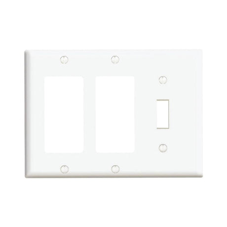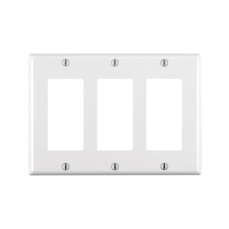 Leviton 80411-W Wallplate, 4-1/2 in L, 6.37 in W, 3-Gang, Thermoset Plastic, White, Smooth