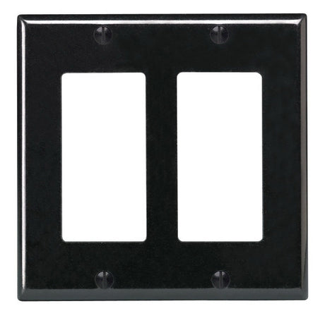 Leviton 80409-E Wallplate, 4-1/2 in L, 4.56 in W, 2-Gang, Thermoset Plastic, Black, Smooth