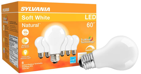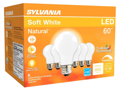 Sylvania Natural 41295 LED Bulb, A19 Lamp, 60 W Equivalent, E26 Medium Lamp Base, Dimmable, Frosted