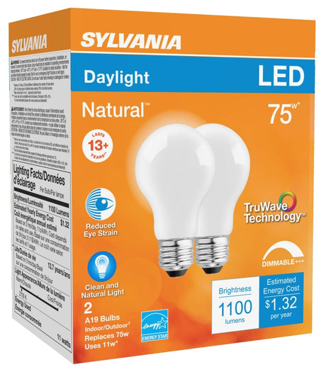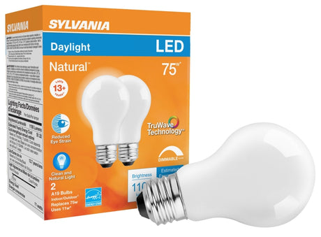 Sylvania Natural 41297 LED Bulb, A19 Lamp, 75 W Equivalent, E26 Medium Lamp Base, Dimmable, Frosted