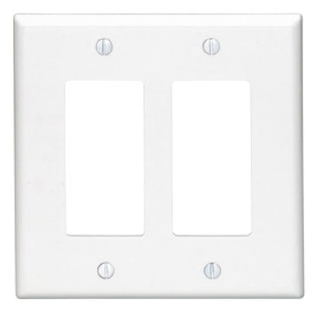 Leviton 80609-W Wallplate, 3-1/8 in L, 4.94 in W, 2-Gang, Thermoset Plastic, White, Smooth