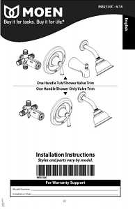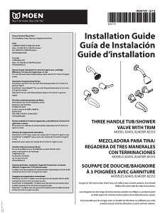 Moen 82663/82403 Tub/Shower Faucet, 1.75 gpm Showerhead, 3-Handle, Metal, Chrome Plated