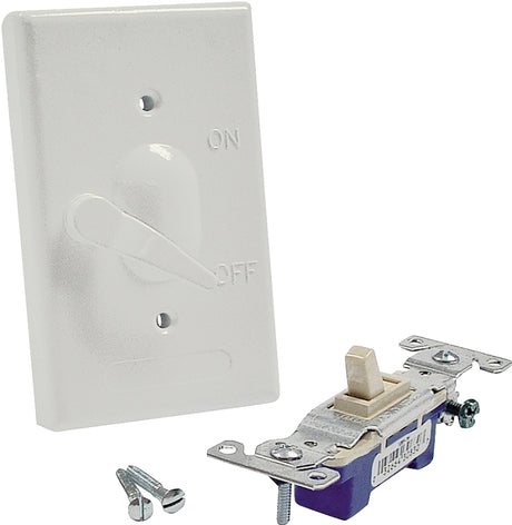 Hubbell 5121-1 Toggle Cover, 4-39/64 in L, 2-53/64 in W, Metal, White, Powder-Coated
