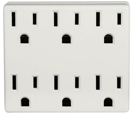 Leviton C22-6ADPT-00W Outlet Adapter, 2 -Pole, 15 A, 125 V, 6 -Outlet, NEMA: NEMA 5-15R, White