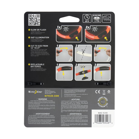 Nite Ize NITEHOWL NHO-10-R3 Safety Necklace, 12 to 27 in Neck, 0.3 in W Collar, Polymer, Red