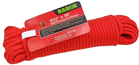 Baron 63015 550 Paracord, 5/32 in Dia, 50 ft L