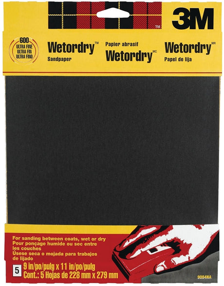 3M 9084 Sandpaper, 11 in L, 9 in W, 600 Grit, Ultra Fine, Silicone Carbide Abrasive