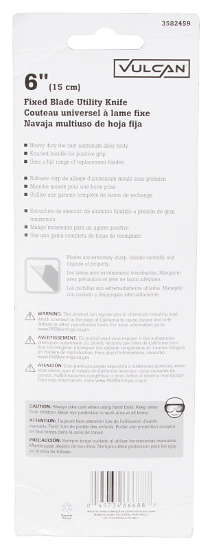 Vulcan 38061 Utility Knife, 2-7/8 in L Blade, 1-1/4 in W Blade, Aluminum Handle, Silver Handle