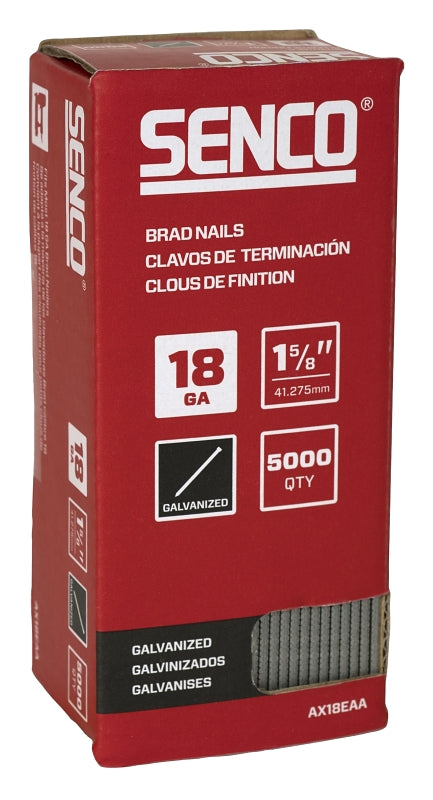 Senco AX18EAA Nail, 1-5/8 in L, 18, Steel, Electro-Galvanized, Brad, Medium Head, Smooth Shank
