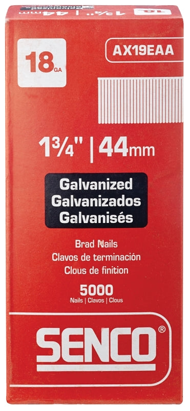 Senco AX19EAA Nail, 1-3/4 in L, 18, Steel, Electro-Galvanized, Brad, Medium Head, Smooth Shank
