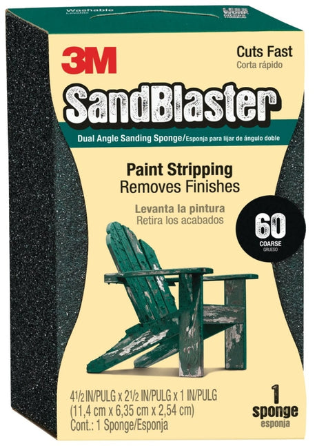 3M SandBlaster 9558 Sanding Sponge, 4-1/2 in L, 2-1/2 in W, 60 Grit, Fine, Aluminum Oxide Abrasive