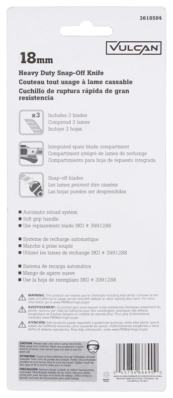 Vulcan JL-VT45534 Utility Knife, 4 in L Blade, 9 mm W Blade, Alloy Steel Blade, Soft-Grip Handle