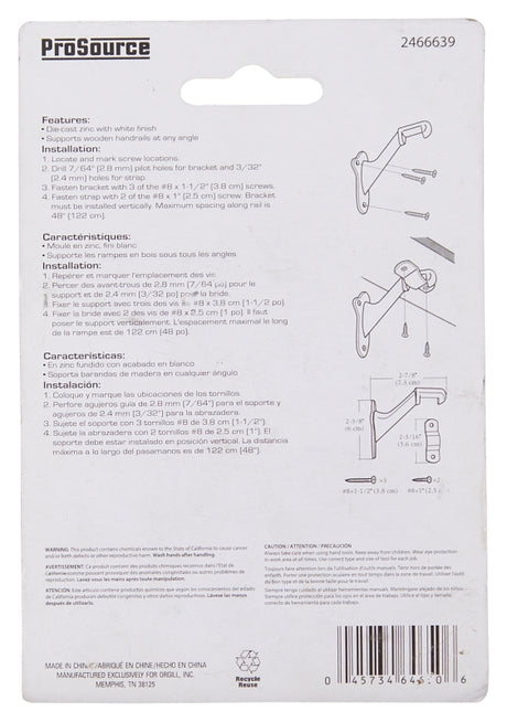 ProSource CL-623C-WH-PS Heavy-Duty Handrail Bracket