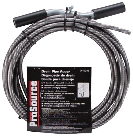 ProSource DC00001-25 Power Drain Snake, 1/4 in Dia Cable, 25 ft L Cable