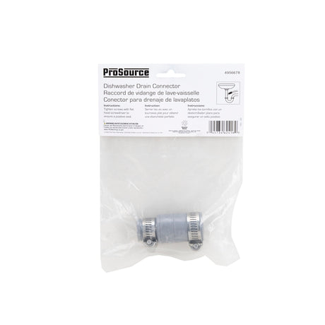 ProSource DWC-100 Dishwasher Connector with Clamp, 3/4 x 1 in, Hose Clamp, PVC, Gray
