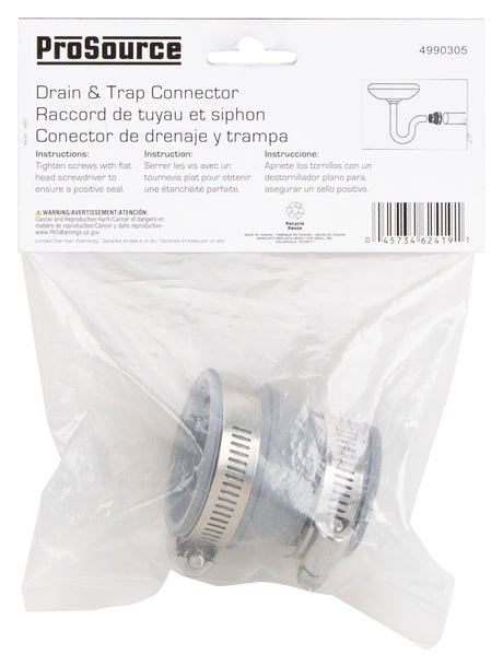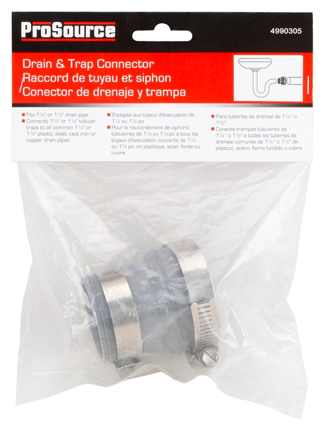 ProSource DTC-150 Drain Trap Connector, 1-1/2 x1-1/4 in, PVC, Gray