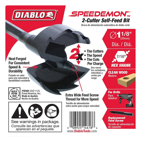 Diablo DSF1125 Drill Bit, 1-1/8 in Dia, 5-1/8 in OAL, 7/16 in Dia Shank, Hex Shank