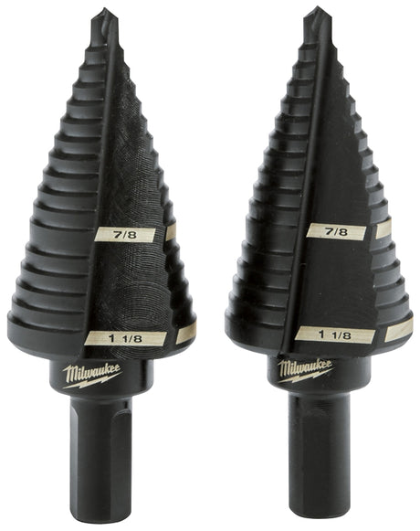 Milwaukee 48-89-9239 #9 Step Drill Bit, 7/8 to 1-1/8 in Dia, 2-Flute, 3/8 in Dia Shank, 3-Flat Shank