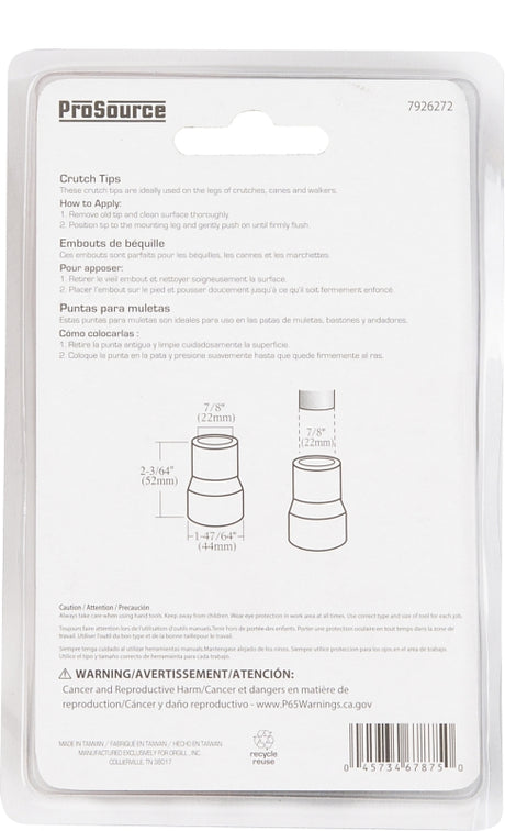 ProSource FE-S619-BL Crutch Tip, Round, Rubber, Black, 7/8 in Dia, 2-3/64 in H