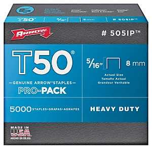 Arrow T50AC Stapler and Brad Nailer, 1/4 to 9/16 in W Crown, T50 Heavy-Duty Staple