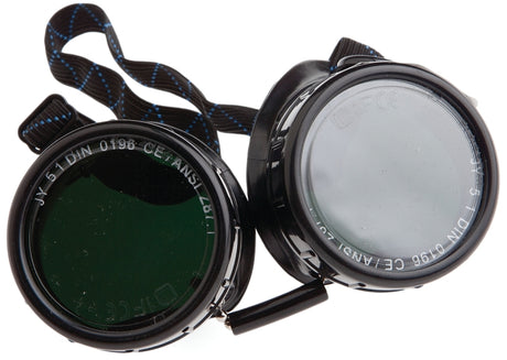 Forney 55311 Brazing Goggles, 1.97 in Lens, Clear Lens, #5 Lens, Plastic Frame, Black/Green Frame
