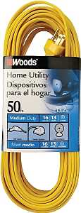 Woods 0832 Extension Cord, 16 AWG Cable, 50 ft L, 10 A, 125 V, Yellow