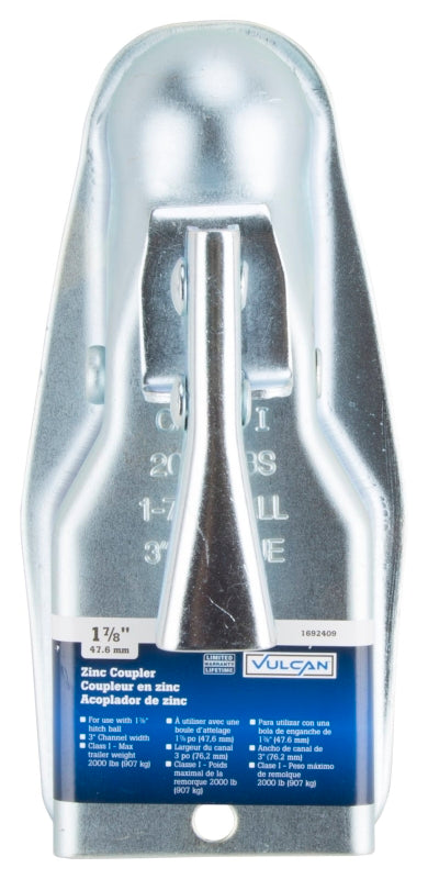 Vulcan 21002 Trailer Coupler, 2000 lb Towing, 1-7/8 in Trailer Ball, Lever Latch, Steel