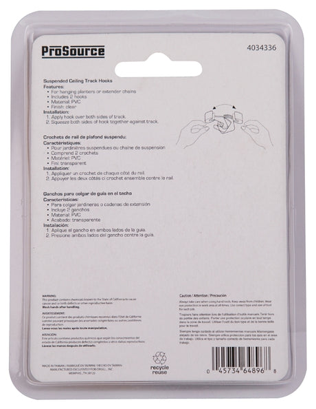 ProSource GB72733-PS Ceiling Track Hook, 1.5 in L, 0.35 in H, PVC, Clear, Wall Mount Mounting