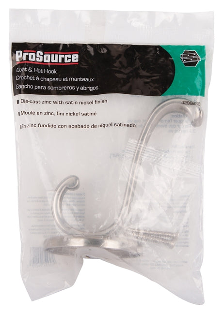 ProSource H-031-SN Coat and Hat Hook, 33 lb, 2-Hook, 1 in Opening, Zinc, Satin Nickel