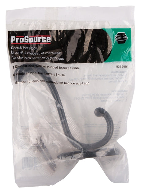 ProSource H-032-10B Coat and Hat Hook, 22 lb, 2-Hook, 1 in Opening, Zinc, Oil-Rubbed Bronze
