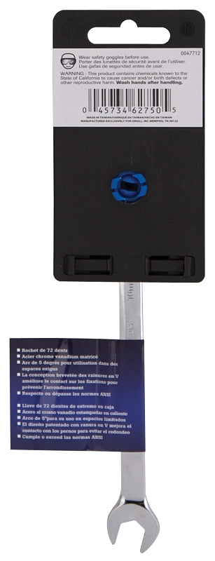 Vulcan PG11/16 Combination Wrench, SAE, 11/16 in Head, Chrome Vanadium Steel, Polished Mirror