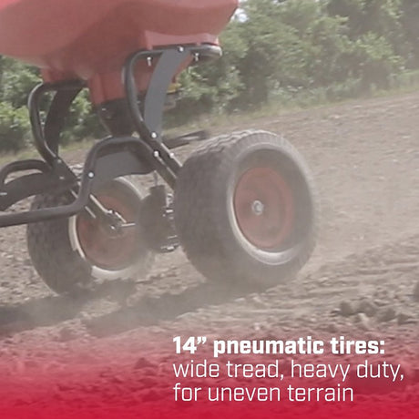 Chapin 8620B Tow Behind Spreader, 150 lb Hopper, Steel Frame, Polyester Hopper, Pneumatic Wheel