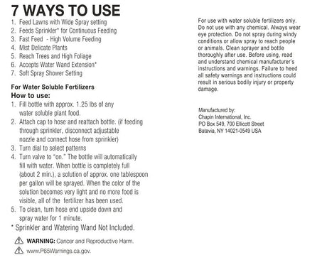 Chapin G385 Hose End Sprayer, Deflector, 2-1/2 in Tank Mouth Opening, 32 oz Cup, Poly