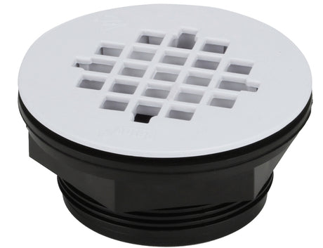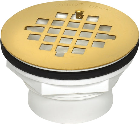 Oatey 42078 Shower Drain with Polished Brass Strainer, PVC, White, For: 2 in SCH 40 DWV Pipes