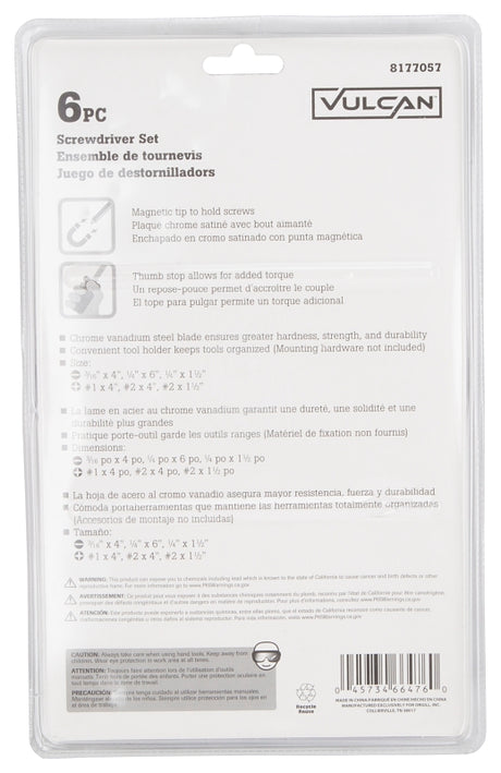 Vulcan SD-SET-1 Screwdriver Set, 6-Piece, Chrome Plated, Blue & Red (Handle)