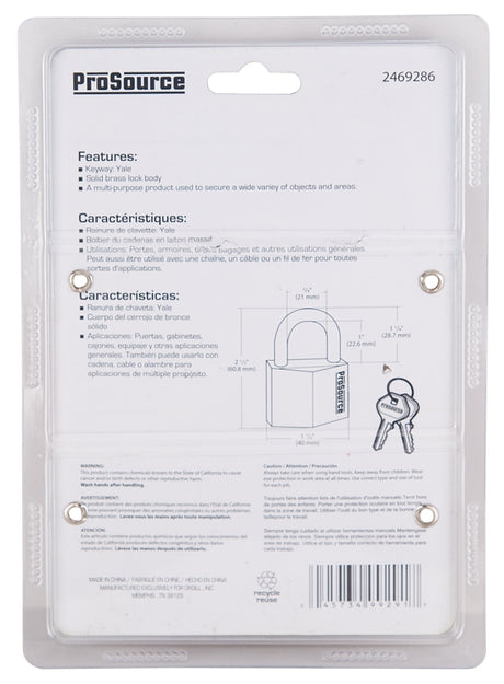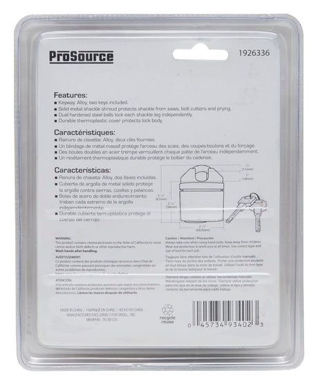 ProSource HD-PWR723-3L Cable Lock, 3/8 in Dia Shackle, Steel Body, Black, 1-1/2 in W Body