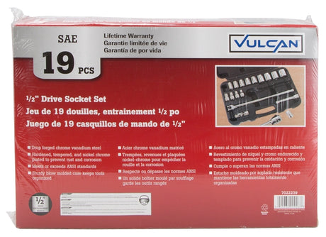 Vulcan TS1019-M Socket Set, Chrome Vanadium Steel, Chrome