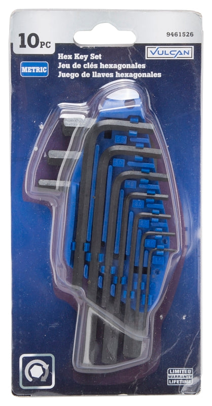 Vulcan TW-001-06 Hex Key Set, 9-Piece, Chrome Vanadium Steel, Black