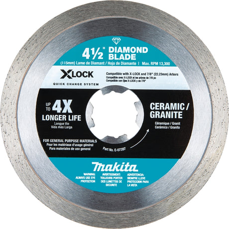 Makita X-LOCK E-07397 Blade, 4-1/2 in Dia, 7/8 in Arbor, Continuous Rim
